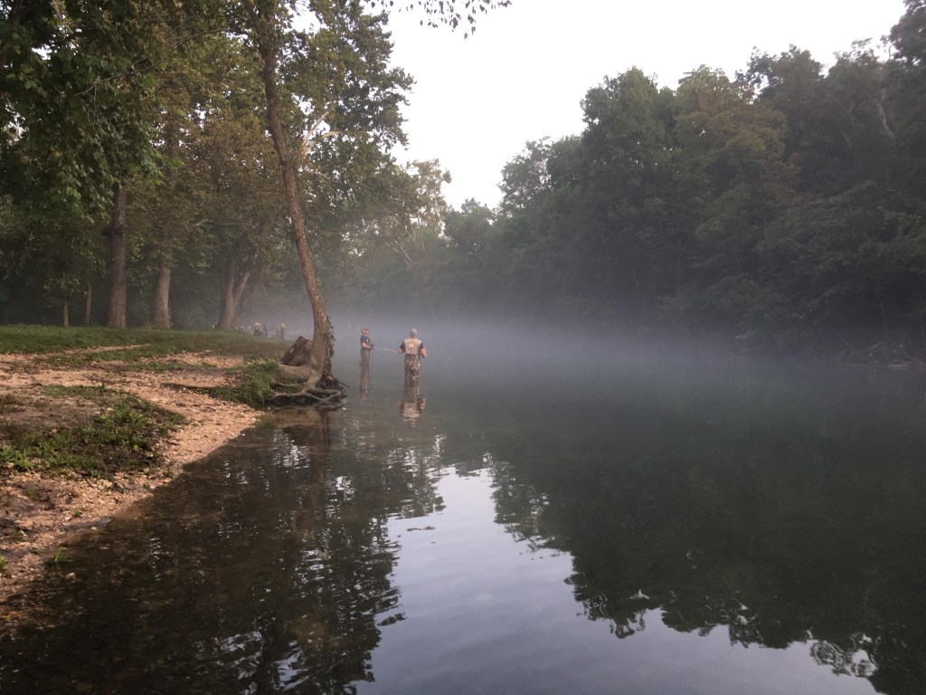 Consequently, I booked us five nights at Bennett Spring State Park. When we arrived there, I was coming down from a euphoric photography high that began on the shores of Lake Michigan in Wisconsin and ended in Iowa’s idyllic farm country. In short, I had hundreds of photos to process. I could not think of a more perfect location to do that than a fisherman’s trout fishing paradise; Vivian would keep busy with her goal attainments while I would enjoy a rare treat, fast and free wifi service at our campsite. The weather was fabulous and each morning, dense fog hung over the beautiful spring that was a few hundred feet from our campsite. This became an irresistible photo subject. In between morning shoots on the river, a day in Springfield (more on that later), extensive bike rides and strenuous hikes through the very large (3216 acres) state park, I worked on my photos.