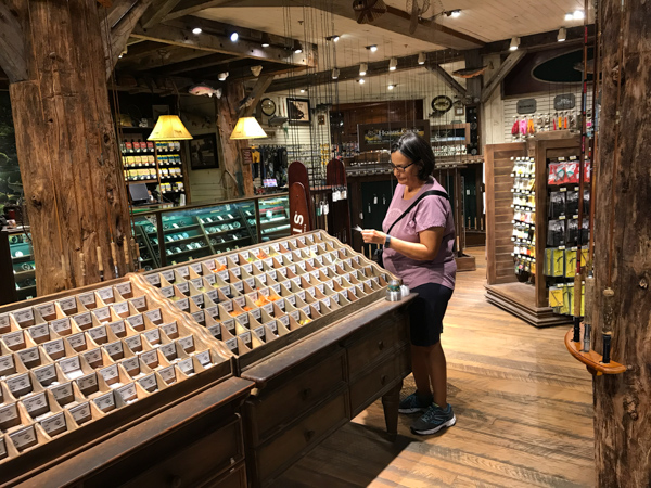 I knew when we got there I would be spending the entire day in this place while Vivian immersed herself in the aisles of lures and other fishing-related gadgets and widgets. I spent my time looking at the fish in the aquarium and walking around taking in the visual overload that fill the store to the brim. It is a gawdy, over-the-top display of the commercialized great outdoors. But we had to go there; and that’s all there is to it.