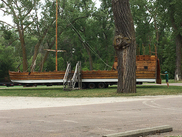 From their 8000-mile and 2-yr expedition, Lewis and Clark gave the Great Plains a face, a vast and harsh territory between the Missouri River and the ominous Rocky Mountains. The Loess Hills brought the Great Plains into focus during our stay at Lewis and Clark State Park. After that, we began our trek north and eventually west, the beginning of our journey into the Great Plains. From the time we left the state park, it took another day and a half before we crossed the Missouri River on I-90 and entered Mountain time. But, before we made the crossing, we had some art to view. Stay tuned.