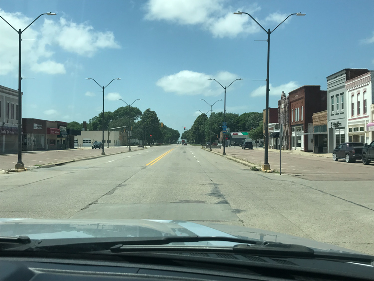 Driving through downtown Onawa, Iowa on the widest main street in the U.S.