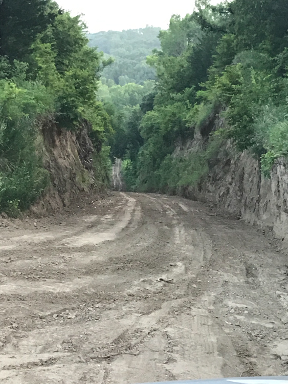 Driving through the Loess Hills, I came onto this road, not what you might expect in Iowa. The bottom of this unimproved & very steep road is invisible from the top. On the right side is a sign warning drivers to enter at their own risk. I have nightmares about pulling our RV on one of these roads!