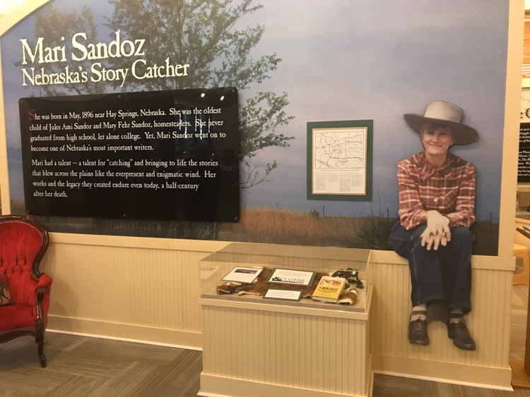 The Mari Sandoz High Plains Visitor Center is more than that; it contains exhibits and is an active research facility containing ecological, geological and sociological collections relating to the great plains, with some art thrown in for show. An author of dozens of books, Sandoz was born and lived much of her life in the great plains, of which is the focus of her books. She wrote about Crazy Horse and the Sioux, she wrote about the fur traders, she wrote about the cattlemen, and she wrote about the buffalo hunters. Her detailed research makes each of her books an historical account of high plains life, especially relevant when coming from a woman who grew up there in a family of immigrant pioneers.