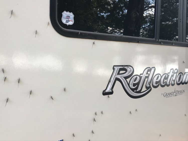 Lake Dardenelle supports a habitat for macro-invertebrates such as the mayfly nymphs. After spending the day exploring the area, we came home to this, the RV covered in mayflies. To me, mayflies are beautiful, so I commenced to photograph them. Enjoy the slide show below.