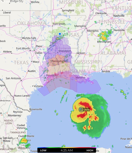 So we left. For the second time in two years, I cancelled reservations at Mississippi River State Park, Arkansas’s newest. It was not meant to be. Instead, we left the southern mountains and drove north to Illinois, barely out of Laura’s cone of certainty. Laura approached the Louisiana coastline as a category 4 hurricane on August 27 and became the tenth-strongest U.S. hurricane landfall by windspeed. Louisiana was devastated – Texas and Arkansas were struck hard. Laura entered Arkansas as a tropical storm and generated eight tornadoes, the largest tornado outbreak recorded in the state during the month of August. Widespread flash flood warnings were issued throughout the state, along with 57 mph wind gusts.