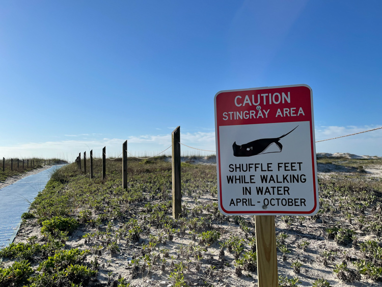Across the street from the campground, a short walk to the Gulf waters where creatures lurk.