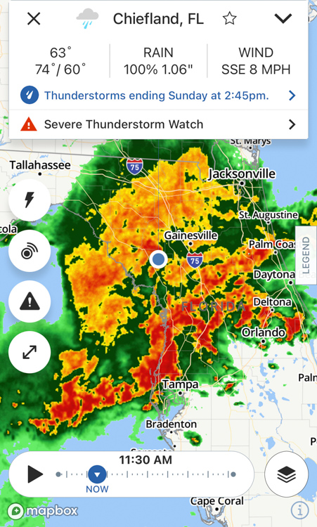 Rain storms continued on the day we left the island and crossed the Bryant Patton Bridge to the mainland. From there, we traveled a short distance north near Tallahassee.