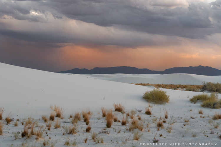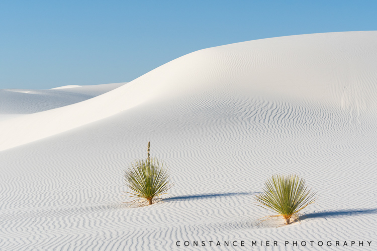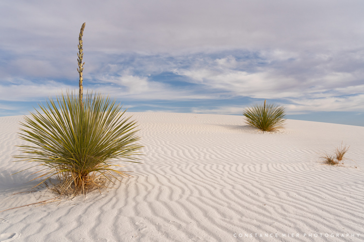 White Sands Dune Field was formed when sea levels that once covered the area dropped, leaving behind gypsum sand, a soft mineral that dissolves in water. This process began as water washed down from the newly formed San Andres and Sacramento Mountains into the Tularosa Basin forming a shallow sea. With nowhere to go, the water evaporated over time leaving behind massive quantities of gypsum crystal deposits that eventually broke down into tiny grains that formed dunes as high as 60 feet. This is what is now 145,762 acres of national park.
