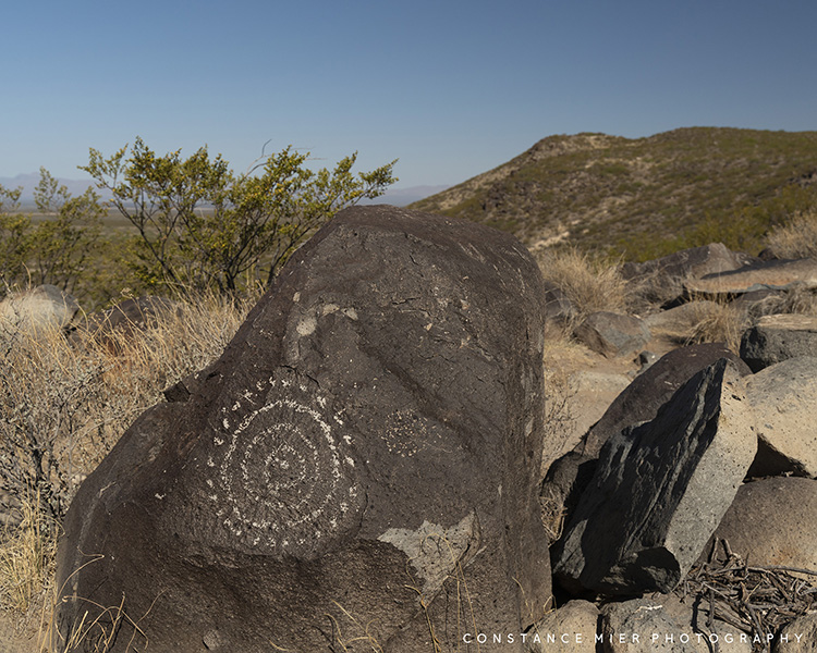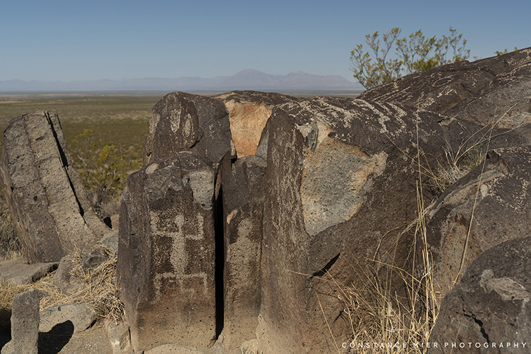 White Sands National Park and Valley of Fires represent the two extremes of the Tularosa Basin. Nevertheless, the basin has been inhabited by people for thousands of years. And a short distance south of the Valley of Fires is another interesting area managed by BLM where you can see evidence of people who lived there between 900 and 1400 AD. Three Rivers Petroglyphs is an amazing display of ancient rock art, containing over 21,000 petroglyphs. It is one of the largest rock art sites in the southwest. Visitors can see many of these petroglyphs on a 1/2mile long trail along a ridge where large rocks carved with faces, animals, handprints and sunbursts can be viewed up close.