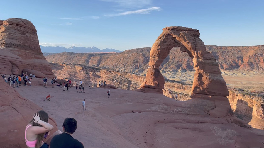 We left our RV at 5:30 am and made a beeline to Delicate Arch trailhead only to find a ¾ full parking lot at 6:15 am. When we drove out of the park at about 10:30 am, the entrance gates were closed, due to full parking lots, a regular occurrence this year. On some days, the gates close for up to five hours. This is the “post” covid park visitation explosion. Even without the dependable Europeans, Arches has experienced record visitation this summer. The last nine months have been Arches’ busiest season since becoming a national park. Several parks are experiencing the same thing and most challenging is that there are a lot more first-time visitors who are unfamiliar with national parks and the mission to preserve their resources.