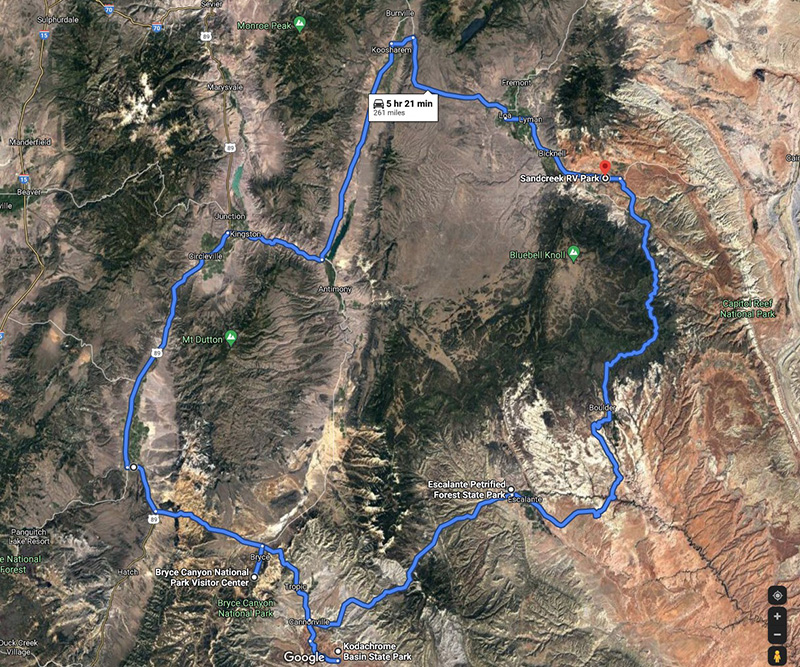 We headed south on scenic route 12 through Grand Staircase-Escalante and visited two state parks, Escalante Petrified Forest and Kodachrome before topping the day off with Bryce Canyon NP.