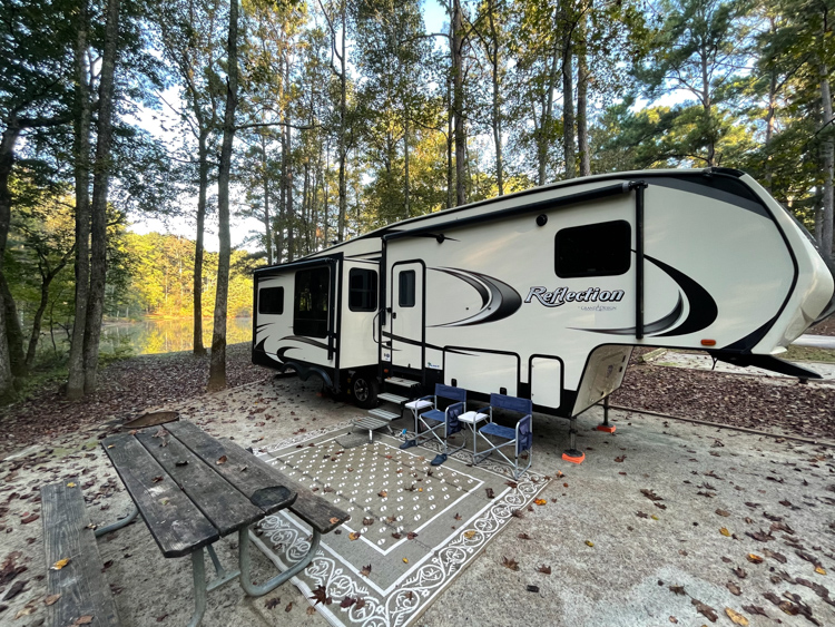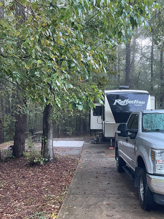 R. Shaefer Heard – on West Point Lake near LaGrange and West Point, Georgia. We loved this campground! Many of the sites are waterfront allowing easy access with a paddle boat, but you have to chose your campsite wisely. Avoid 66-84 loop unless you like very narrow and steep driveways, only 30 AMP and don’t want easy access to the water. I thought our loop, 1-16 was the best for water access. If you like to walk and bike, this is a wonderful campground for that, large and hilly! Water/electric/50AMP, laundry, very spotty cell, no wifi.