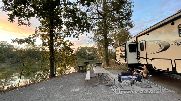 Long Branch – on the Caney Fork River downstream from the Center Hill Dam in Tennessee (east of Nashville near Lebanon). It is a relatively small campground, concrete pads, water/electric/50AMP, laundry and wifi if you are in the right location. The ambience is hit or miss as you have the beautiful river, but the dam and electrical plant near by. Easy in and out though and convenient for accessing Burgess and Cummins Falls State Parks. Not a good campground if you want to hike or bike around.