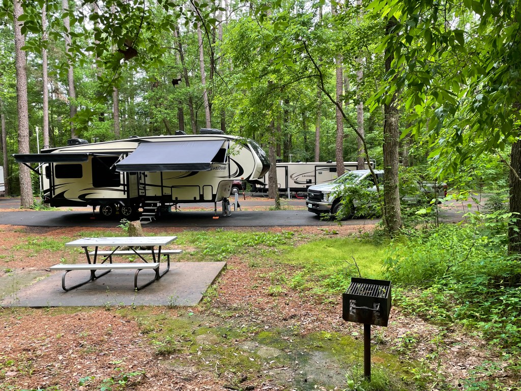 We considered our site, #30 to be the best, with maybe a couple others comparable to it. Each site pad is well groomed, very spacious, nicely shaded and with only about 25 RV sites and a handful of tent sites, this small campground is remote and quiet. Only the sounds of a barred owl can be heard at night.
