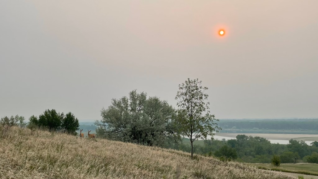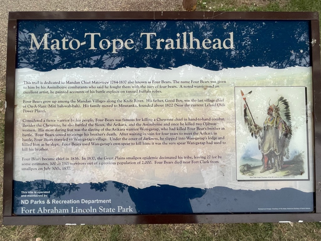 We could have stayed at the Bismarck KOA but when I discovered that this state park campground offers wonderfully large campsites along the Missouri River and has an interesting history, it was a shoe-in. Not only was having the Missouri River near our campsite a perk, but so were the miles of hiking trails that offer beautiful overlooks of the river, lots of deer, and a historical tour of a Mandan Village and Fort Abraham Lincoln where several replicas of buildings are scattered about as you can see in the slideshow below.