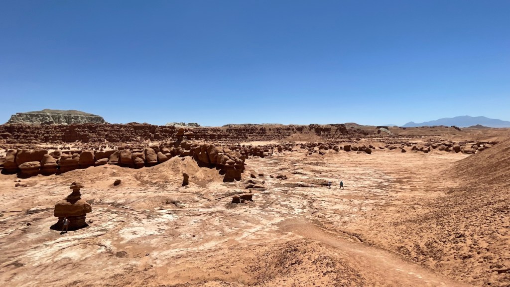 An overlook view of Goblin Valley State Park’s small campground. If not for the 90+ degree temperatures and 20+ mph winds, we would have stayed a second night. But we loved this park nevertheless!