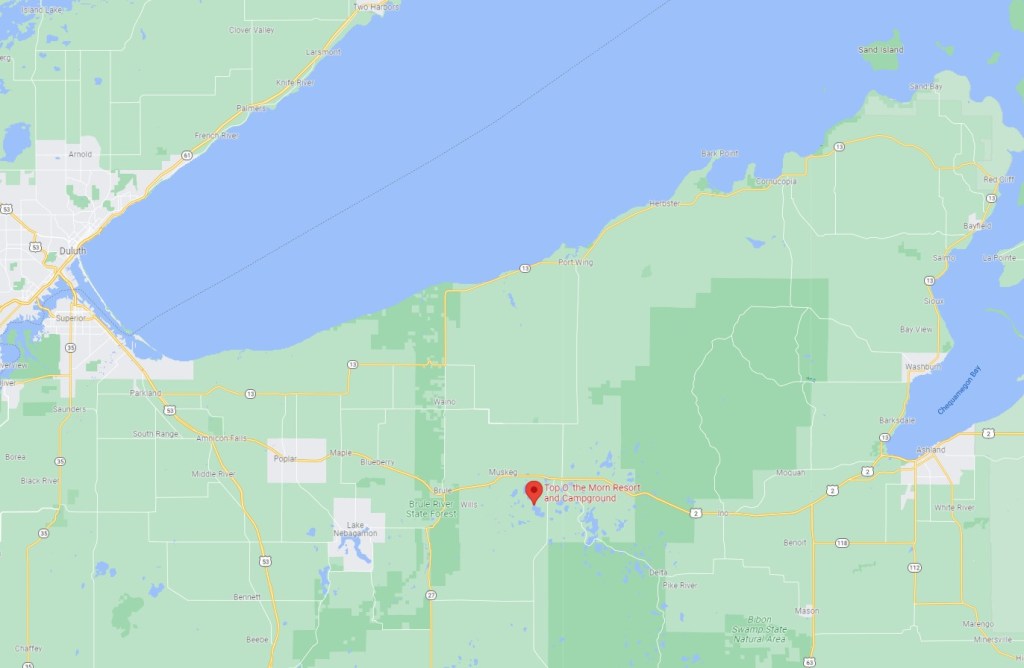 On Iron Lake and a short distance from Highway 2 is Top O’ the Morn Resort. Duluth, MN and the Apostle Islands National Lakeshore are each about 45 miles away from the campground.
