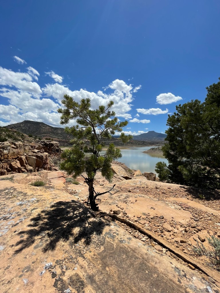 I could easily hike near the campground along the bluffs of the Abiquiu Reservoir. The flat top mountain in the background is Cerro Pedernal, famously painted by Georgia O’Keeffe and location of her ashes.