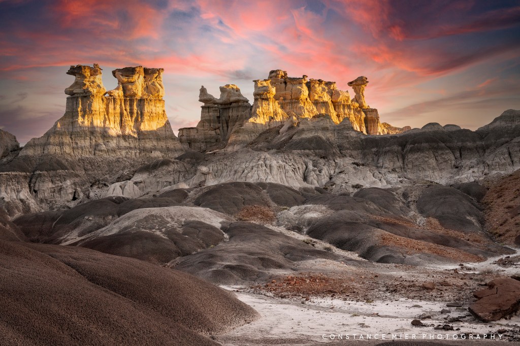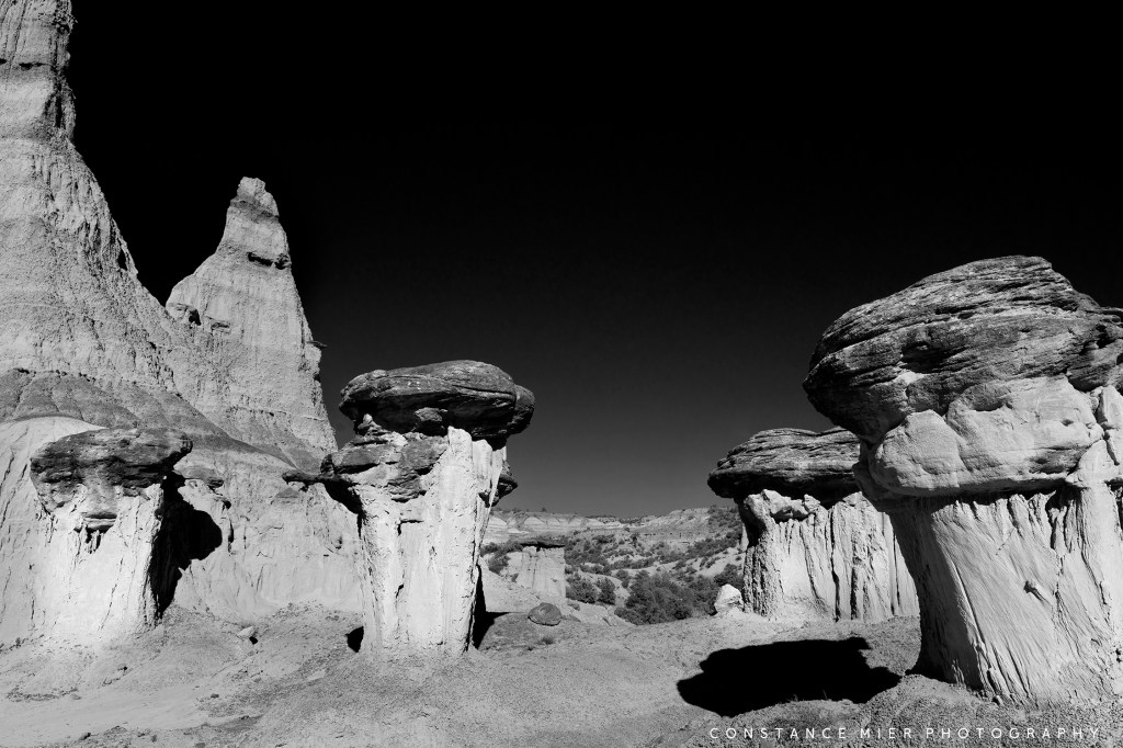 The Lybrook Badlands and Black Place – 52 miles. We hired Navajo Tours USA to take us into the Lybrook badlands one afternoon and glad we did. The badland areas, including the Bisti/De-Na-Zin Wilderness area are accessible on public lands but a 4-wheel drive, navigational knowledge of the area and attention to weather (roads becoming impassable due to rain) are essential if you really want to get in there and see it. For a shorter version, the Bisti wilderness can be easily accessed from a parking area not far from Highway 371 and an easy hike in allows you to see the badlands up close.