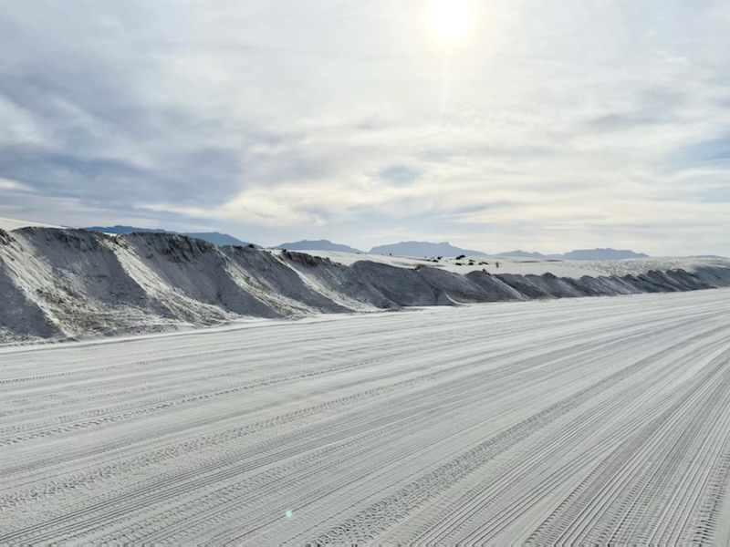 A 7 1/2 mile sand-plowed road takes you into White Sands National Park. There are plenty of pull-off parking areas from which you can walk into the dunes to your hearts content.
