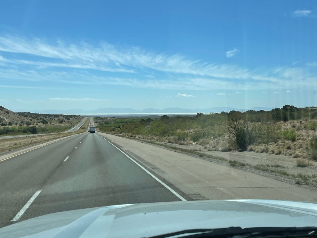 Highway 70 that passes White Sands National Park (you can see the dunes way off in the distance) looks much like most if not all the highways we drove while towing the RV around New Mexico.