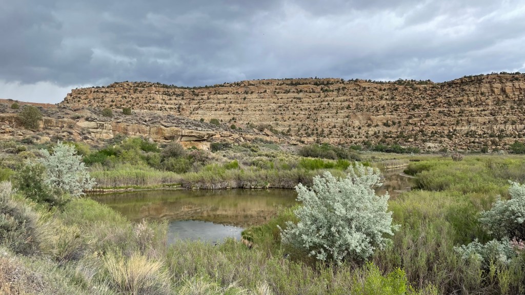 San Juan River near Navajo Lake State Park – 25 miles. Beautiful river scenery and lots of fly fishermen.