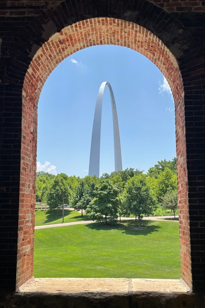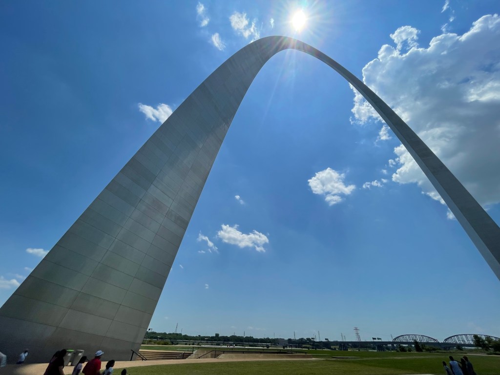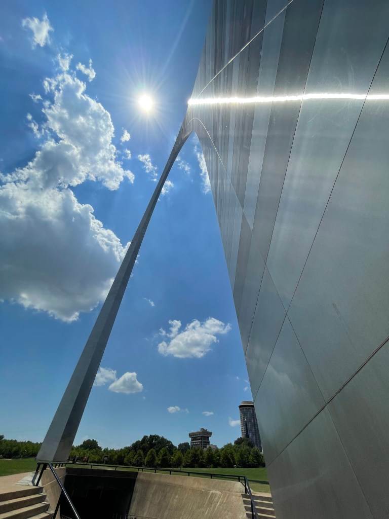 Most people will visit the Gateway Arch to marvel at a magnificent feat of architectural design and engineering – and to take a thrill ride on the tram that runs up one of the legs of the arch to its top while noting the exceptional precision of less than one inch required to connect the two legs at the top. They’ll ponder the “caternary curve” that is as wide on the ground as it is high. But I wonder how many give greater thought to the reason it was built in the first place. And not just as a memorial to Thomas Jefferson and to give a great bow to the city of St Louis, but for its meaning as it was envisioned by the designer, Eero Saarinen.