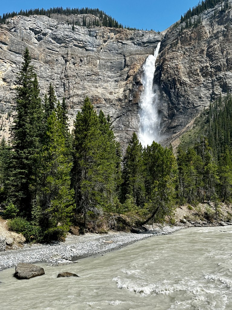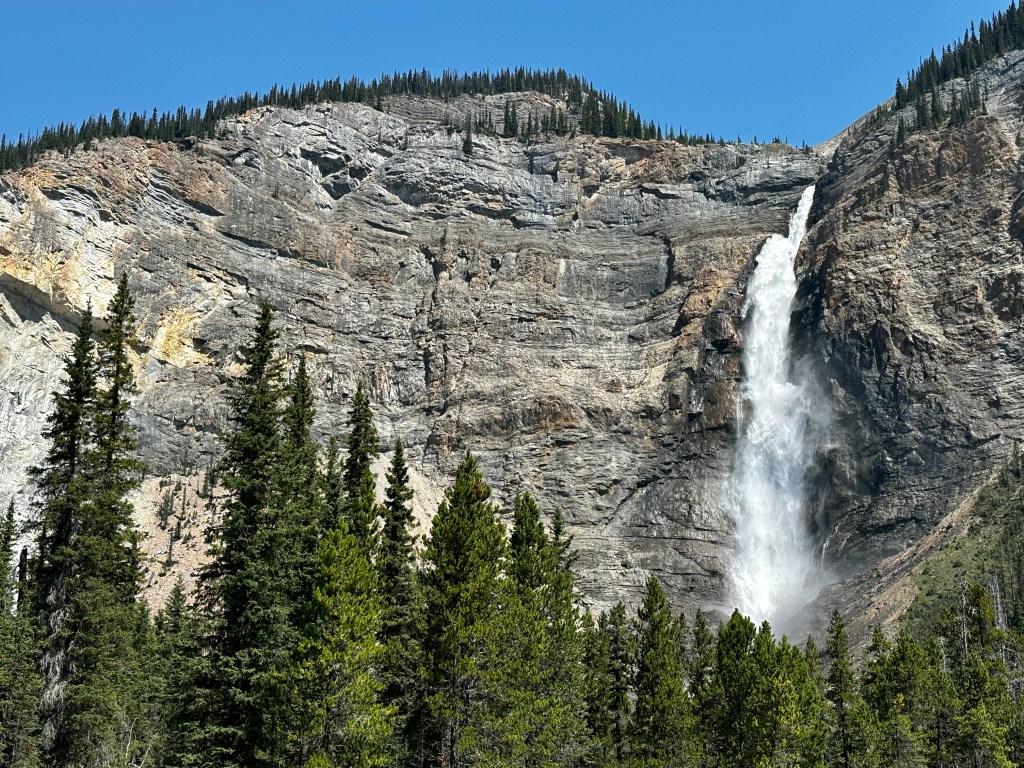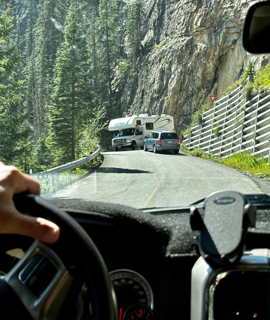 On our way back to the campground, we took a detour to see Takakkaw Falls as recommended by our Canadian friends. They warned us of the road with several hairpin turns leading up the falls, so we made Spencer drive his shorter truck. Good thing we did because this is what we encountered on the way up.