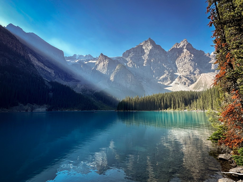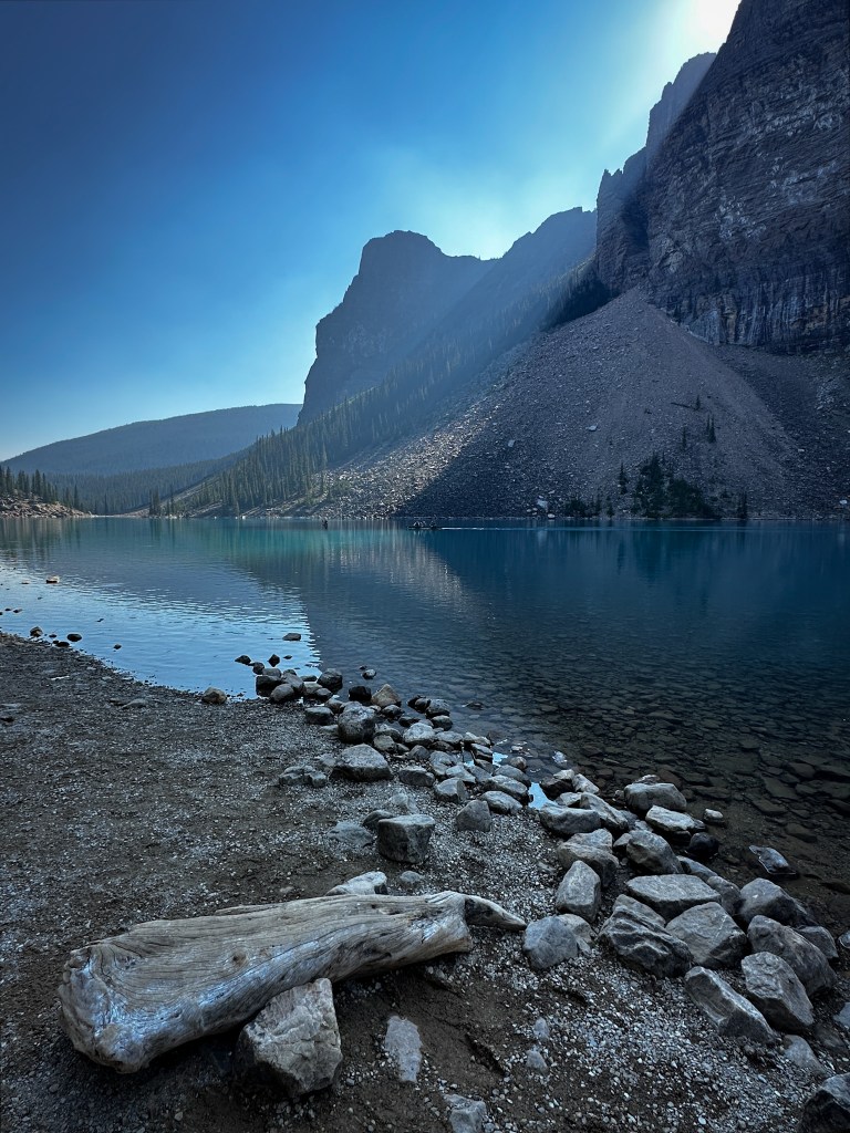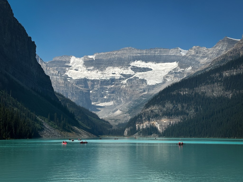 The next day, we drove an hour to the Lake Louise Resort parking lot where another reserved shuttle awaited us. This time, it was to take us to Moraine Lake and afterwards the infamous Lake Louise. By 9 am, crowds were already forming around Moraine Lake, some preparing to venture out on the water with bright red canoes, some climbing up the Rockpile for a classic selfie view of the lake surrounded by peaks. From there, we continued hiking along Moraine’s western shoreline.