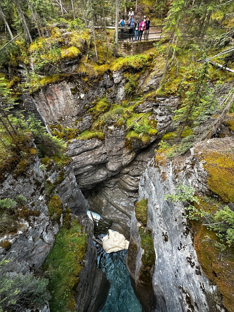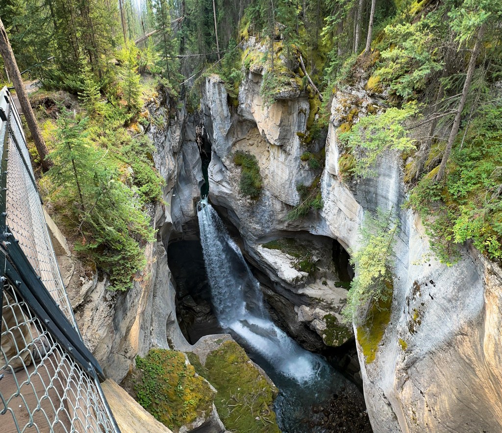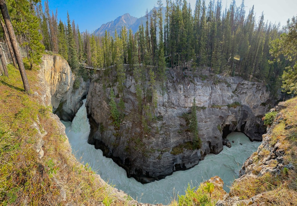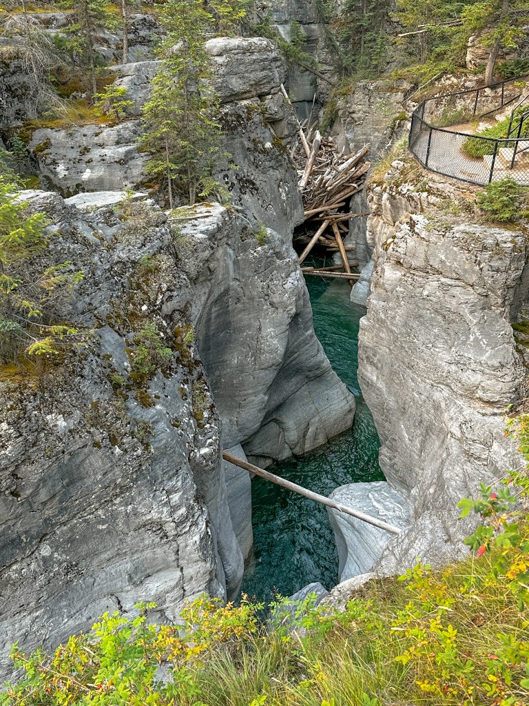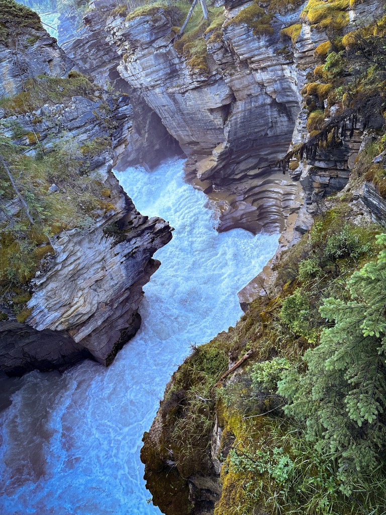 And I think where this great marriage between a national park system and wilderness succeeds more than most is in the place where you can stand on the edge of a chasm and watch from various angles the relentless effects of running water carving its way through rocks and do it from the safety of a concrete and iron bridge spanning a very deep gorge. Where the Athabasca, Sunwapta and Maligne Rivers run with powerful forces over steep cliffs and thrash their way violently through irregular shaped canyons of their own making is where we discovered the magic of Jasper National Park.