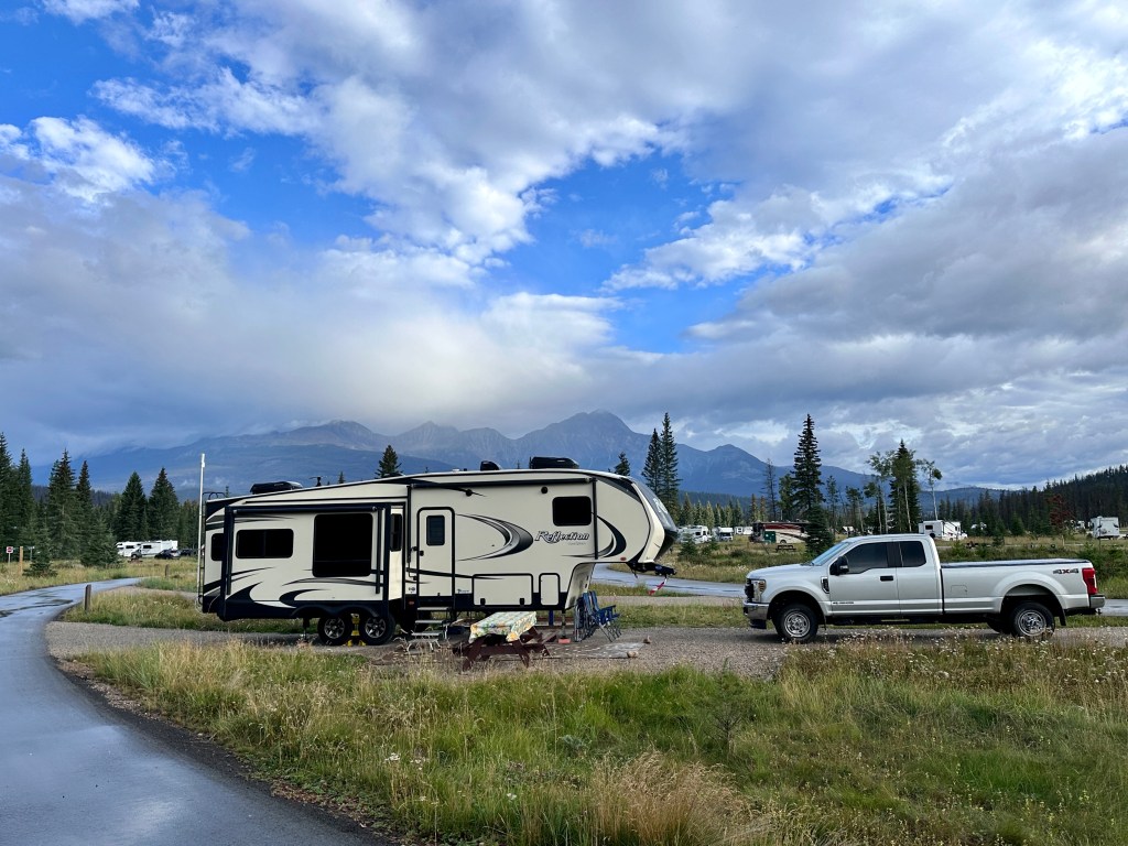 Whistlers Campground was our home for 12 days. Many will remember it being very wooded, but bark beetle decimated the forests. The park responded and where trees were cut and stumps removed, the campground is now wide open space with panoramic views of the mountains.