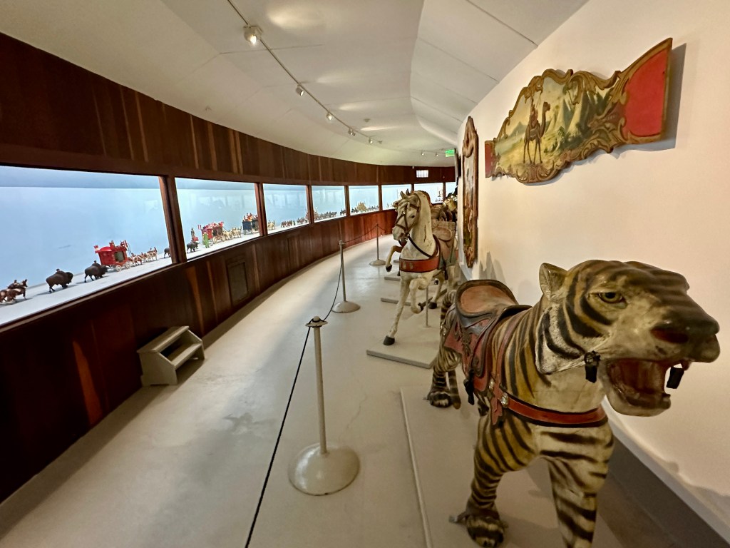 On the grounds, you will find a collection of carriages and sleighs, period homes with early American furniture and accessories, one of the finest collections of 18th and 19th century American folk art (including the original cigar store figure), a replica of Electra’s Park Ave apartment including the original fine art pieces, and the 518-ft long Circus Building shaped like a horseshoe and containing the miniature Arnold Circus Parade (One man’s creation) that stretches nearly the full length of the building.