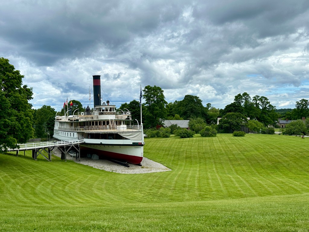 The last remaining side paddlewheel passenger steamboat, the S.S. Ticonderoga was built in 1906. The 220-ft long steamship served the north-south route on Lake Champlain. She was saved from the scrape heap in 1955 and brought to Shelburne Museum.
