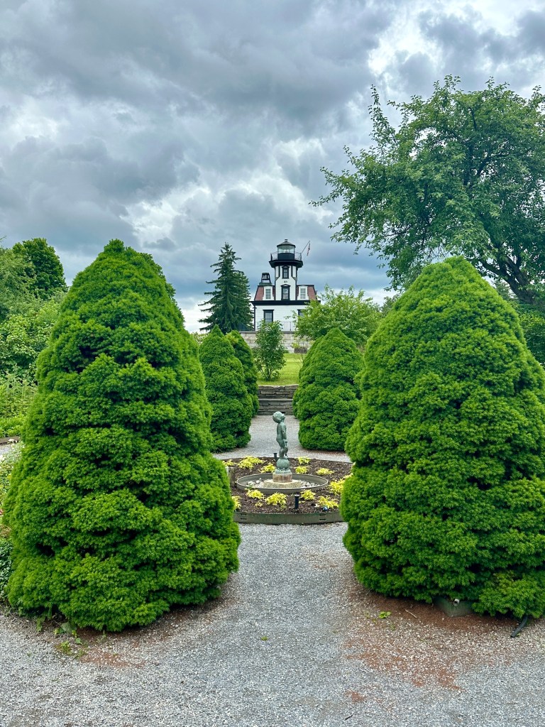 On the grounds of Shelburne Museum, the Colchester Reef Light in the background.