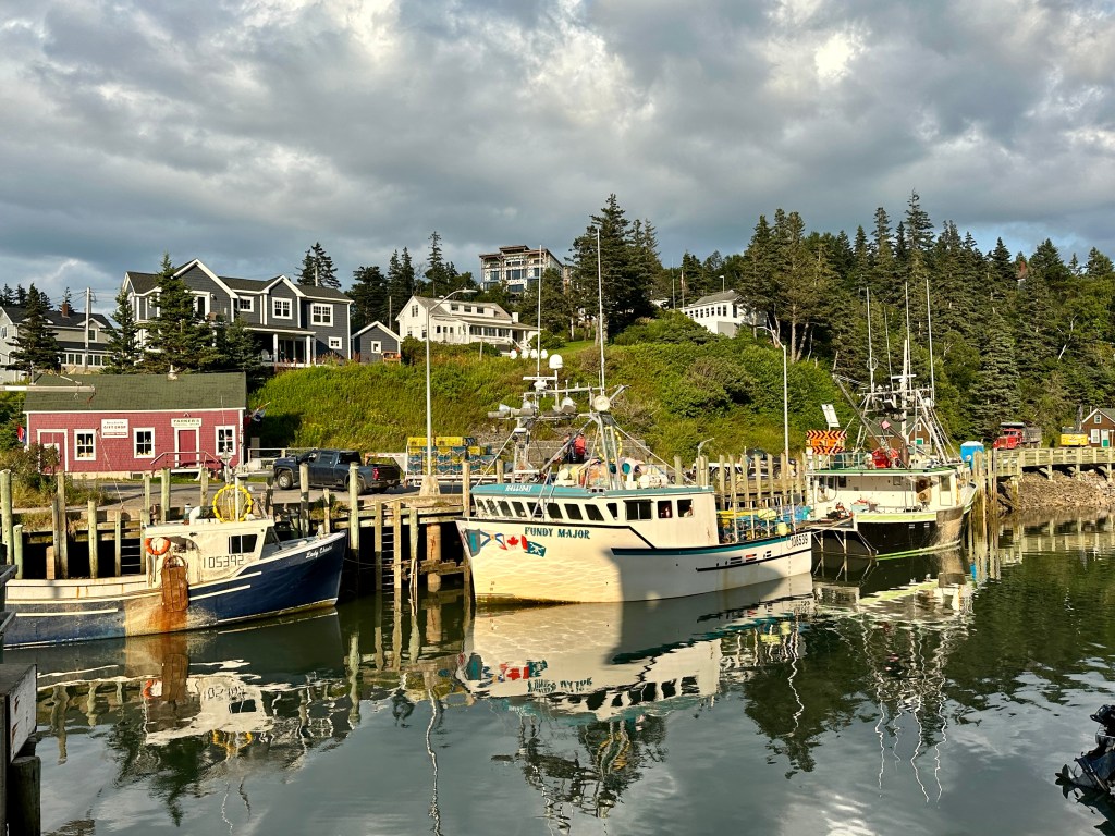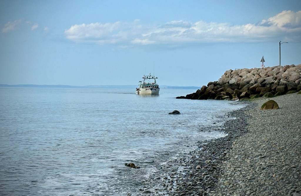 After a few days, we found ourselves again on the Bay of Fundy – this time on the Nova Scotia side. I can’t think of a better way to end our time in Canada than in Nova Scotia’s Annapolis Valley, famous for its wine. A few days gave us time to visit Digby, another seaport well known for its scallops, search out and find a Highland cow, and spend an afternoon wine tasting that seamlessly continued with a beer tasting and a cider tasting. On our final evening, we drove to the bay to eat one last lobster meal at the Halls Harbour Lobster Pound where we watched the lobster boats return on the final day of lobster season. It was a bittersweet ending to our tour of the seabound coast.