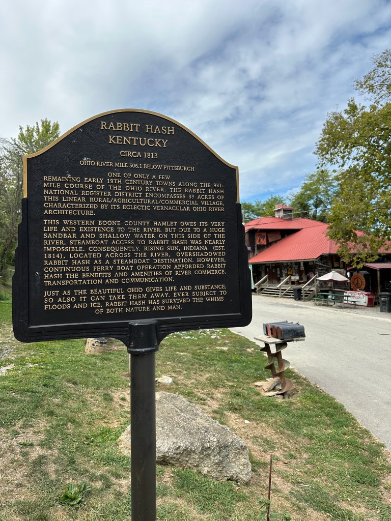 Disappointed at missing the bison, we left the park and drove to nearby Rabbit Hash, because well, why not? With a name like that, we had to see for ourselves. Rabbit Hash is an unincorporated river community in Boone County, KY established in 1831. While the origin of its name remains up for debate, the most plausible one is the abundant local rabbit population was driven to higher ground during the Ohio River flood in 1847. Consequently, the prolific animals became an ingredient in a special stew called ‘hash’.