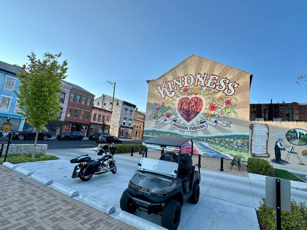 One of the primary reasons we chose to stay where we did was the charming river town of Madison, Indiana. This beautifully restored town has 133 blocks of historic landmarks. Once an important place for river commerce via steamboats, Madison’s boom ended with the railroad, after which it fell into a “century of slumber”. Now it can proudly say it contains the largest contiguous national historic landmark district in the U.S and people flock to it for the hydroplane races, Indiana’s oldest farmers market (yes, those tomatoes are getting a little ripe), a riverfront, the downtown art and music scene, and the popular Clifty Falls State Park.