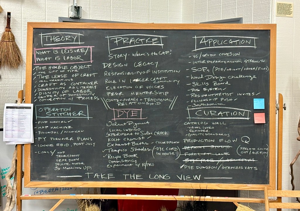 The crafts program began in 1893 when the college president, William G Frost got inspired by a student from the Appalachian Mountains who offered a handwoven coverlet as payment for tuition. The cottage industry of weaving and woodworking soon became a labor program for students. While Frost, the president of a racially integrated college found inspiration in mountain culture, he took it further and made it the college mission to market a region that was geographically isolated and lacked economic opportunity – thus creating a fascination for its culture and a market for its crafts.