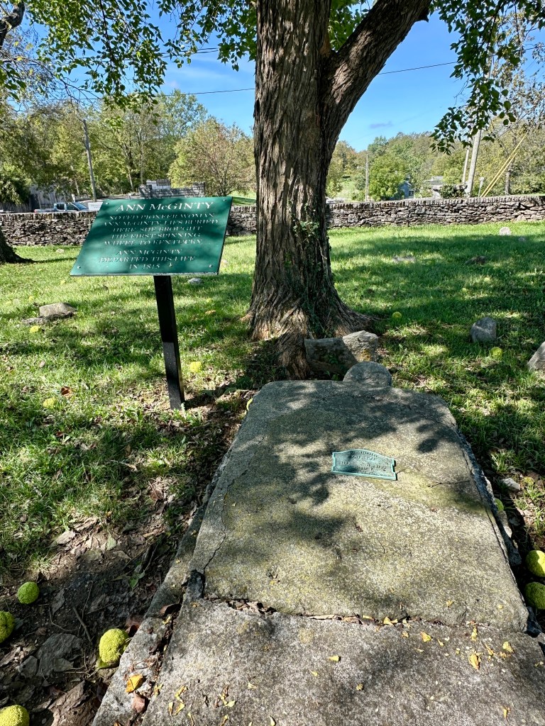 It must have been a thriving business because each time McGinty lost a husband, she remarried. Why? Because she herself could not own the business – but her husband could. McGinty died in 1815, apparently before her fourth husband passed. And as a point of interest, McGinty would be what Berea College’s President Frost would call a “contemporary ancestor”.
