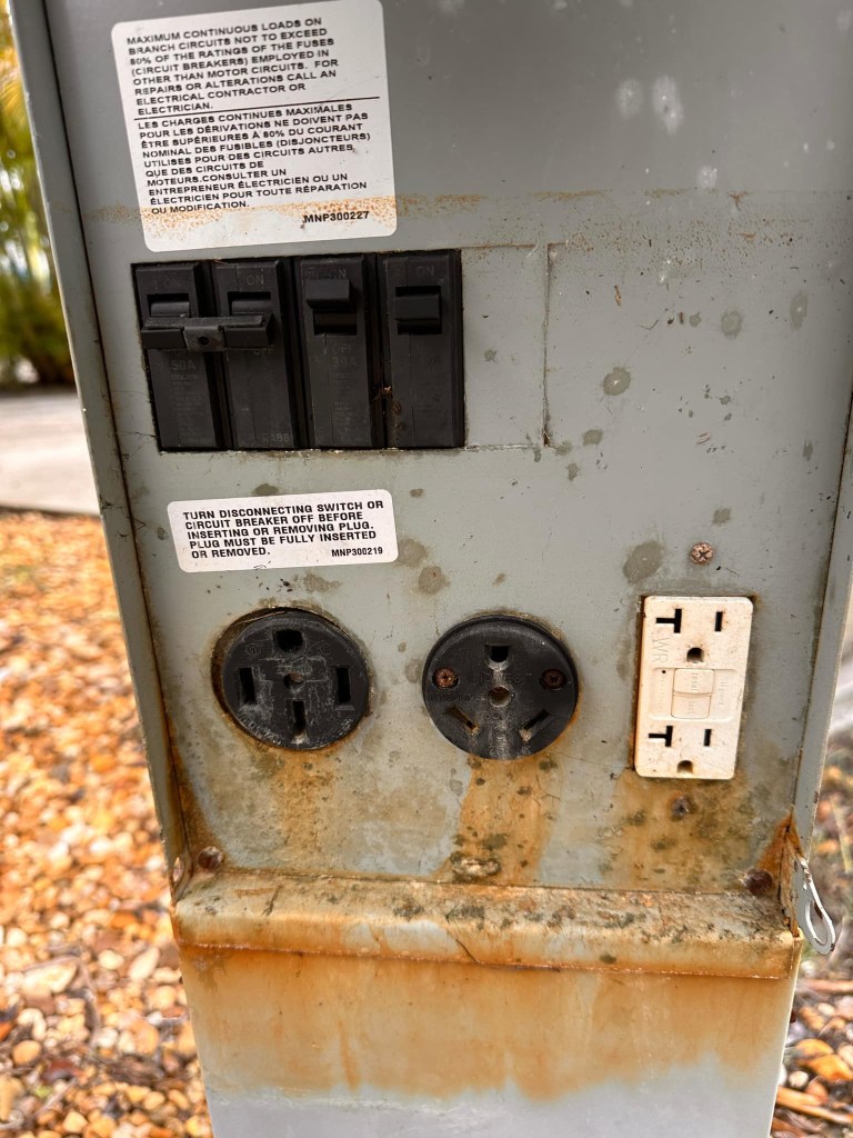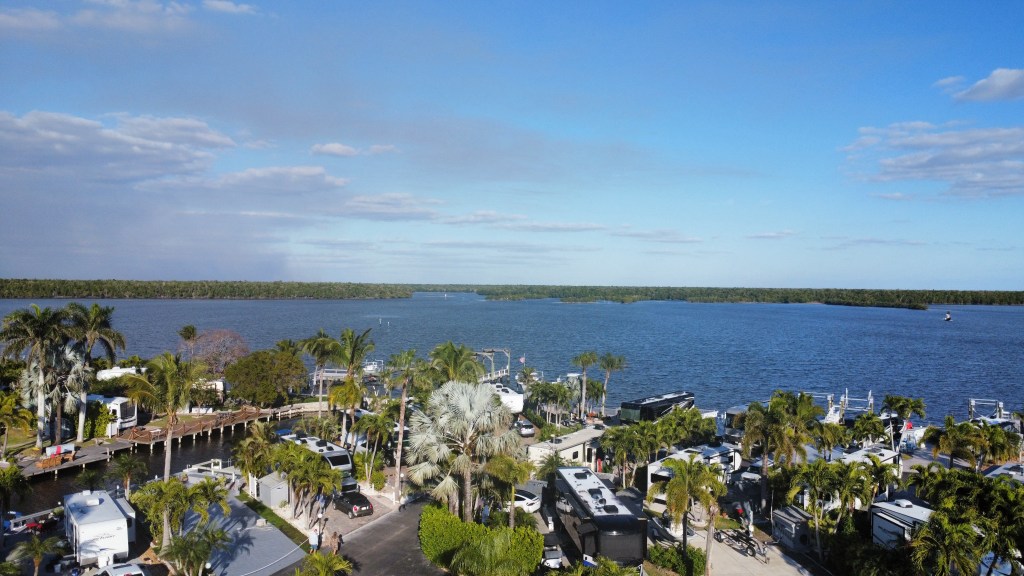 After leaving Florida Caverns, we had one more night on the road before arriving home. Living on Chokoloskee Island has always been mine and Vivian’s dream and since 2018, has been our sweetest anticipation as we come to the end of our travels each year. It is true we often come back to a mess, the aftermath of a hurricane – Irma, Ian and Helene, Milton. These cause enough flooding to damage the power pedestal and shed contents, and a couple of times the shed itself. They also leave a muddy mess. But that’s it – an RV lot, not a house.