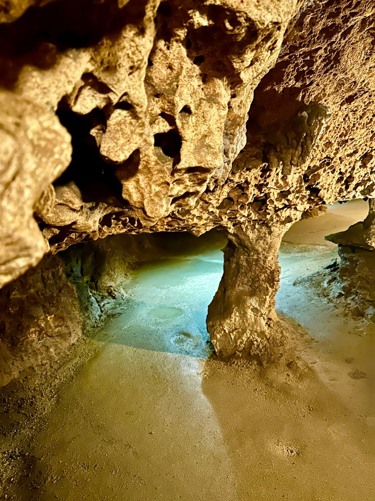 Opened to the public in 1942, Florida Caverns is one of many Florida state parks that gives access to the natural beauty of Florida’s karst landscape. And it is the only one that offers cave tours. The reprieve from the above-ground heat is enough reason to take the tour, but it was also a fun walk through narrow tunnels and large rooms full of fascinating limestone formations. The tour guide tells you interesting stories as you pass through the color-lit cave where you see evidence of the 1930s-era Civilian Conservation Corp that worked to enlarge cave passageways and wire it with electrical lighting.