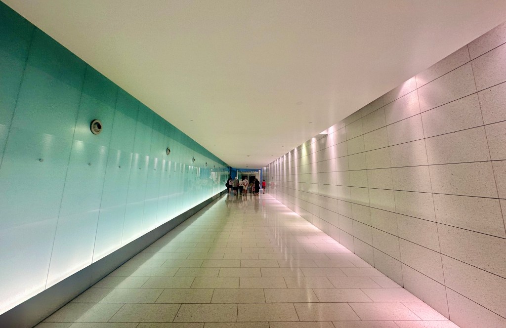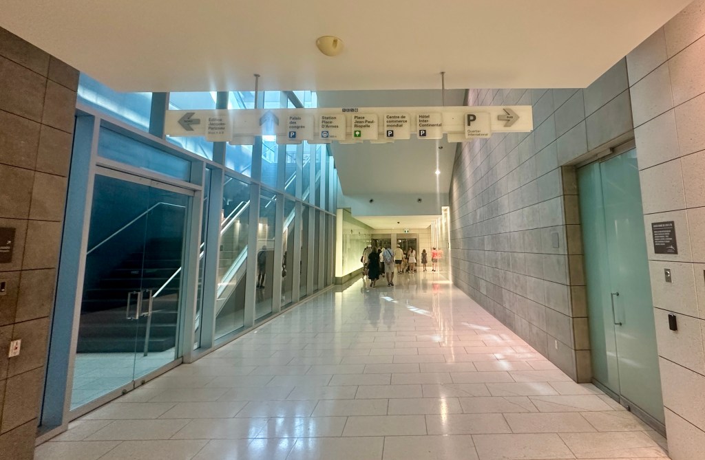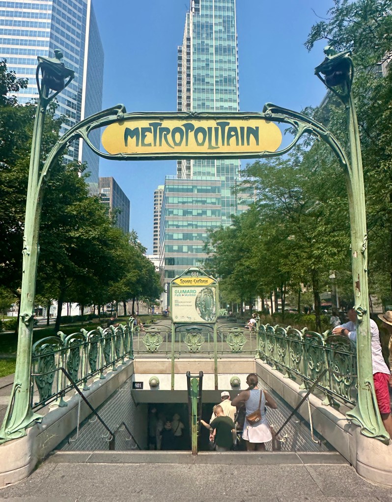 One of many entrances to Montreal’s metro subway rail and underground city. The Art Nouveau design mimics the Paris metro station entrances from around 1900. Below are photos from the underground walkways, mostly empty as many Canadians were on holiday at the time.