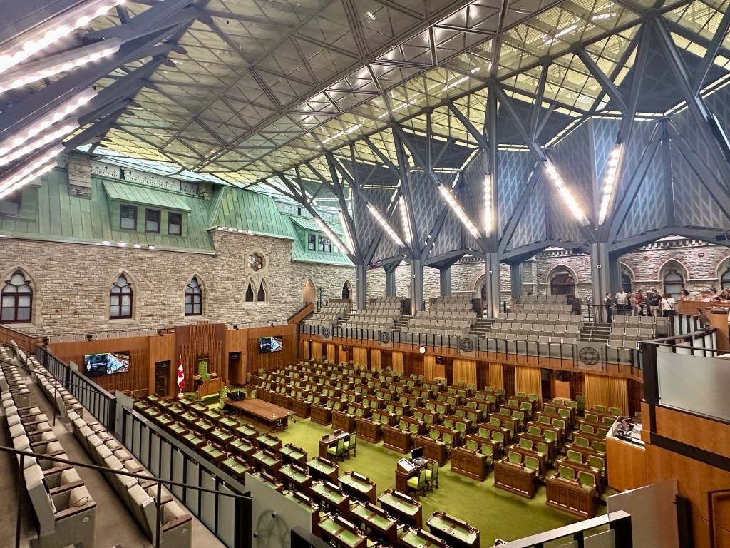 The House of Commons is temporarily meeting in the West Block of the complex. You can see from the walls that this is normally an outdoor area.