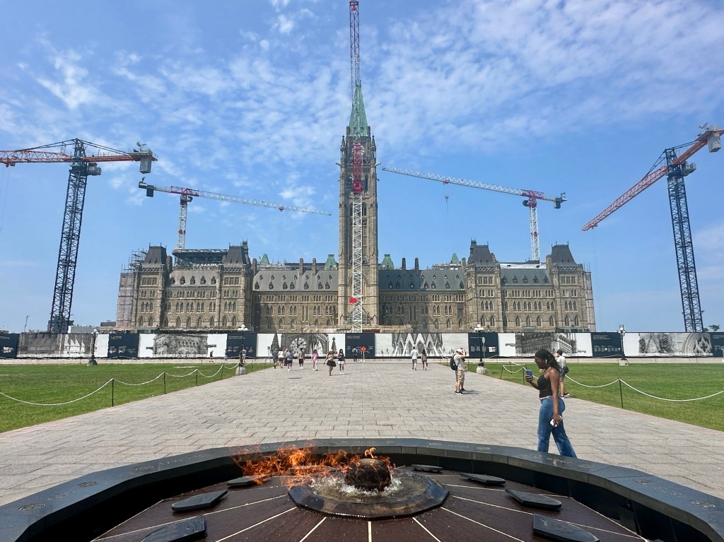 What we came to see is Canada’s parliament building, currently undergoing a multi-year renovation. In the foreground is the Centennial Flame, commemorating the 100th anniversary of Canada’s confederation.