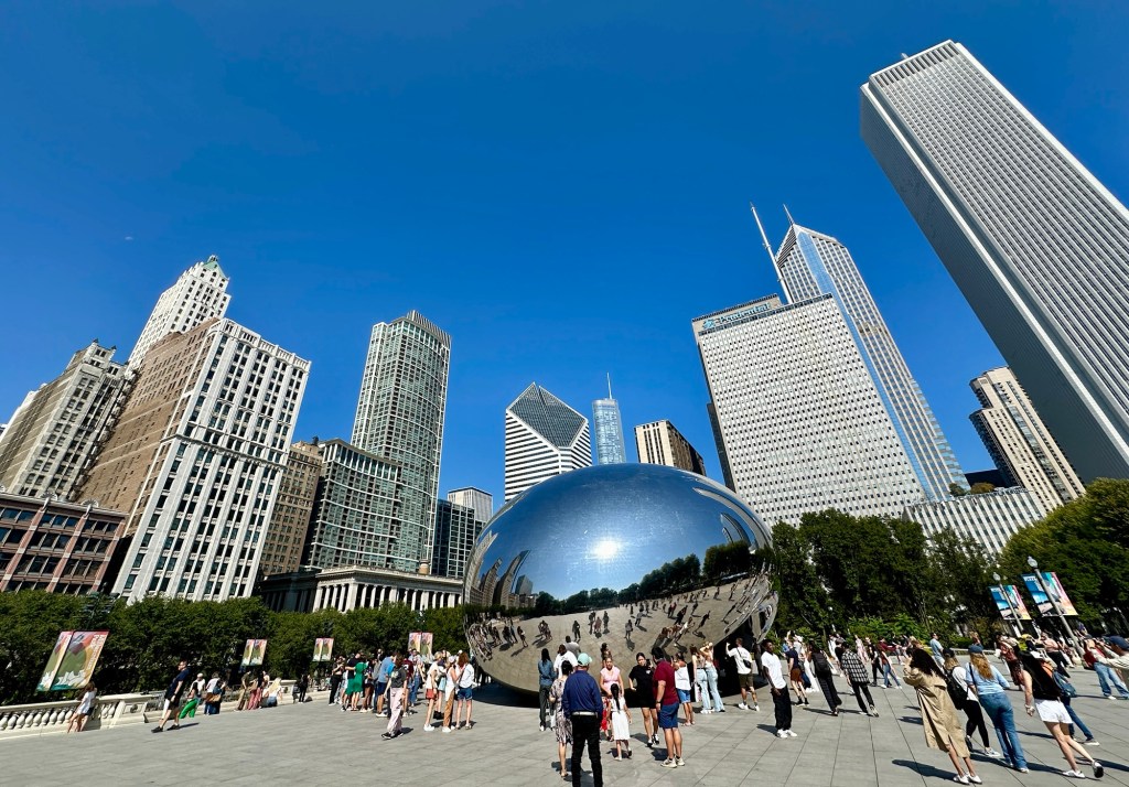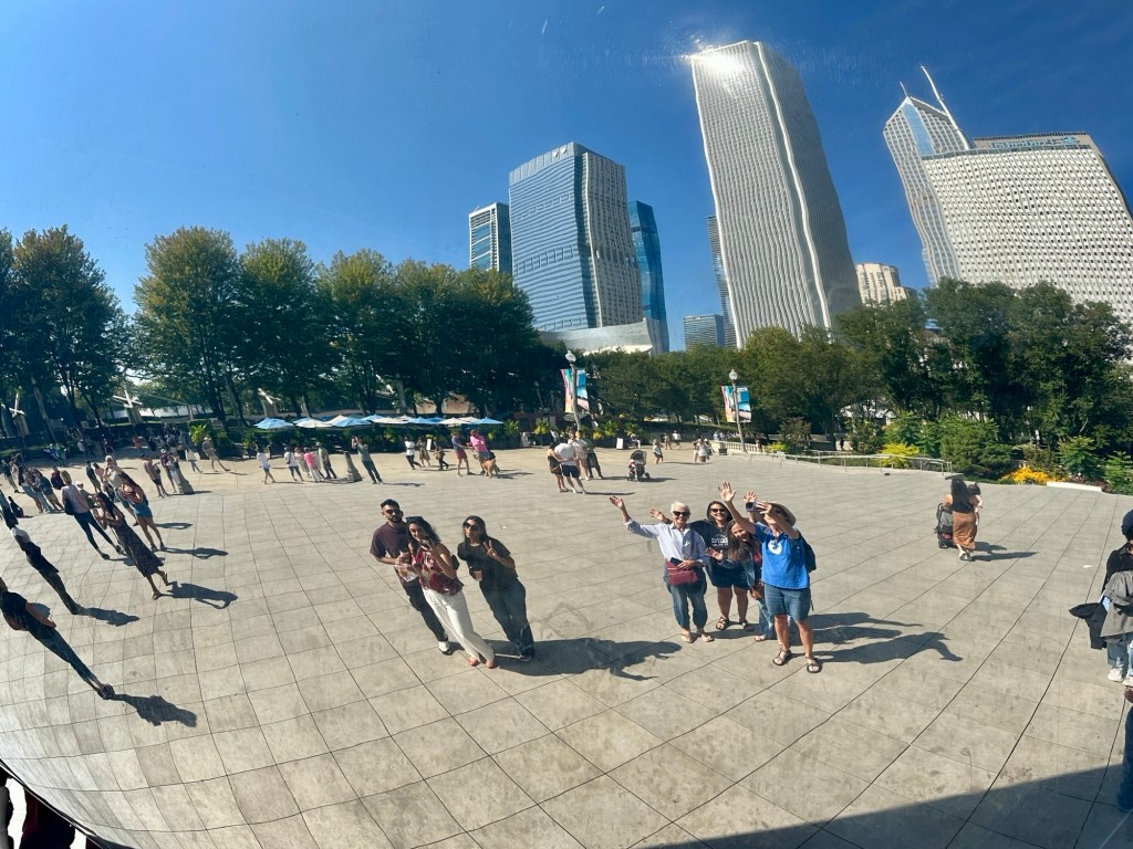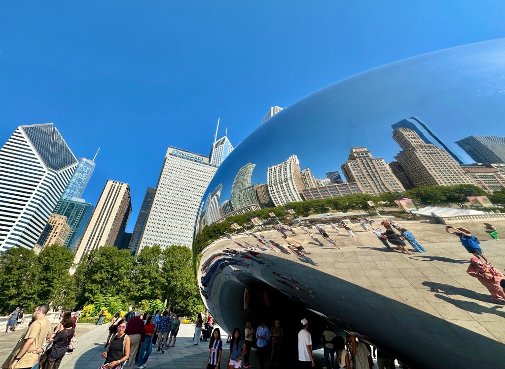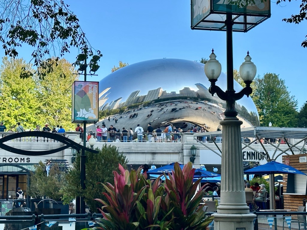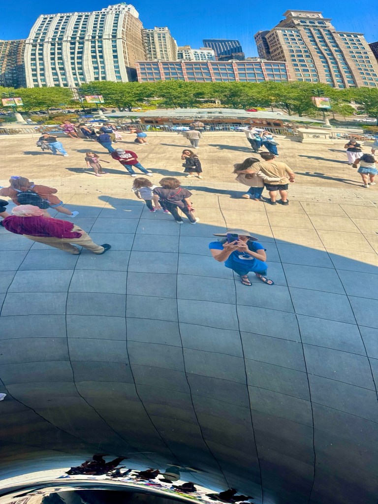 Everyone downtown seemed to be there to experience Millennium Park, a public space that is among the top ten destinations in the U.S. with 25 million visitors a year. Perhaps the greatest attraction in the park is ‘Cloud Gate’ or better known as, ‘The Bean’. This was the first attraction for us after coming out of the underground train station.