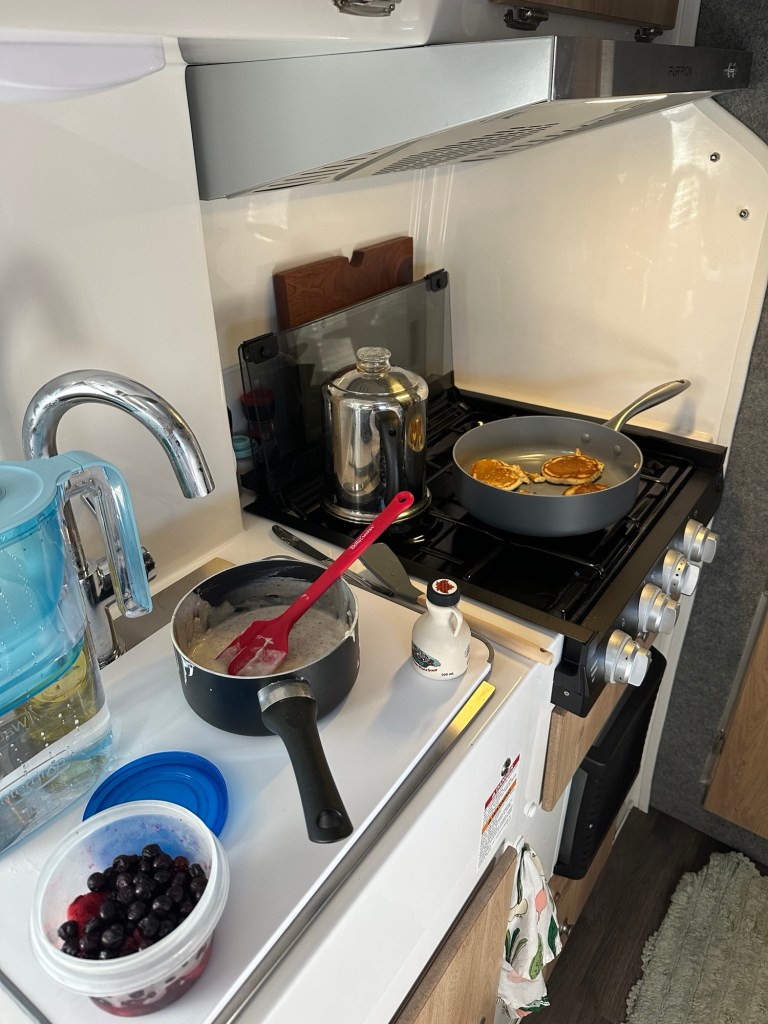 - pack our lunch in a cooler for the road – now we can stop and make lunch with full access to the kitchen and refrigerator.