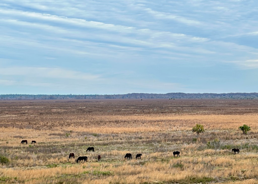 3. Paynes Prairie Preserve – who would have thought there are bison in Florida? There are, and you can see them in this park. And you will see wild horses as well and plenty of birds. The history of the bison and horse herds are interesting and the park offers a wonderful interpretive center where you can learn about the region and its animals. Lots of hiking and bicycling, and a fishing lake. The north section of the park is a 13- mile drive from the campground but well worth going to for the wildlife. The campground has 30 RV sites and several tent-only sites. Sites are private and spacious, but as with most state parks, choose your site wisely if you are in a big rig. We love the great space in this park and seeing horse and bison in the wild. Such a unique experience here in Florida!